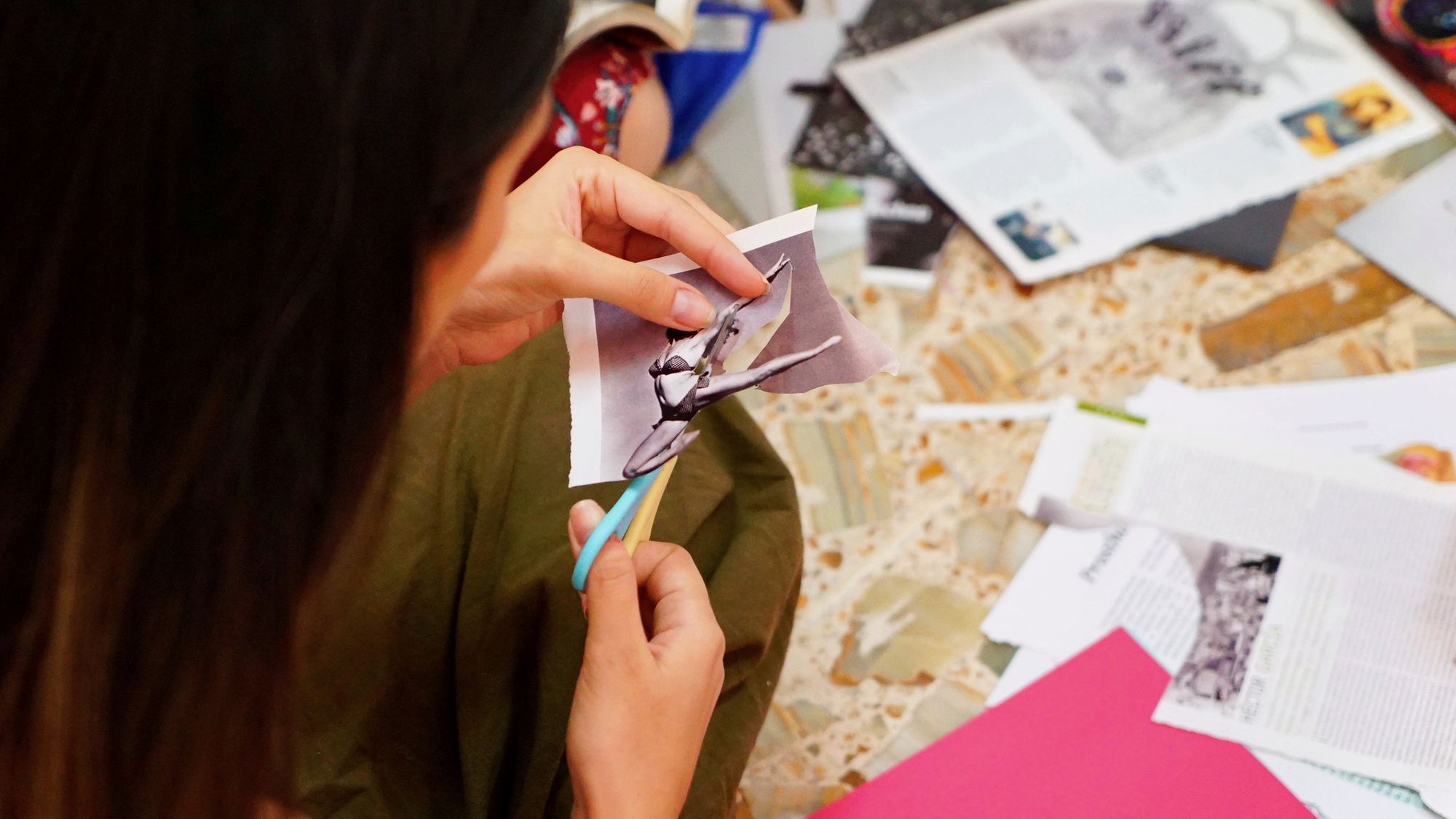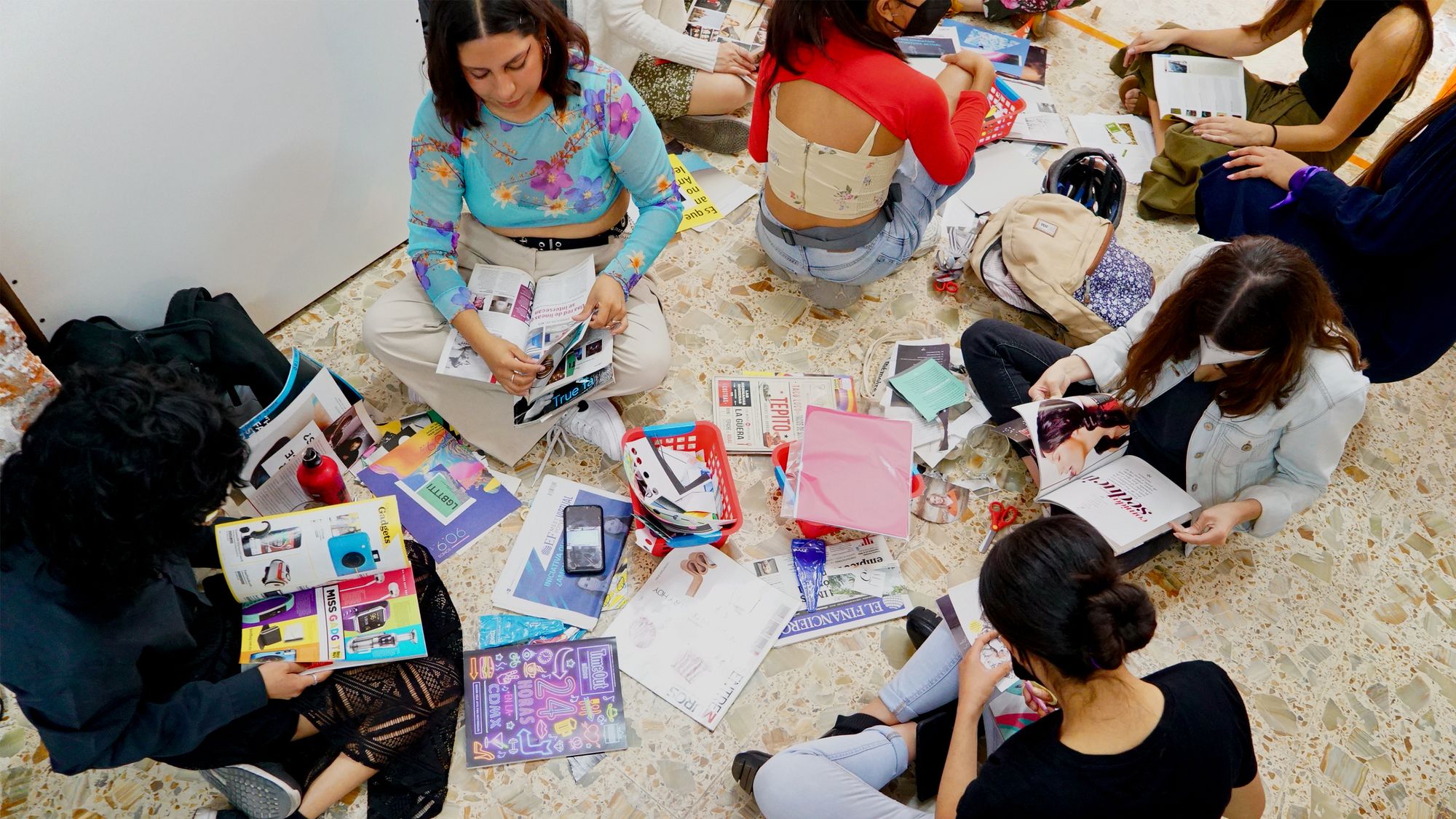 En un programa de actividades de 3 horas, las asistentes tuvieron la oportunidad de participar en un conversatorio con Pao Kitsch, activista y artista visual basada en Berlín sobre cómo el proceso del collage también puede ser una excelente manera de generar nuevas ideas y estimular el pensamiento. A medida que miramos a través de una selección de imágenes, se involucra el pensamiento y la reflexión.